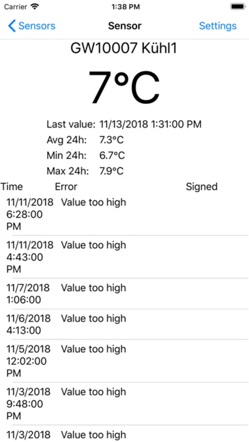 Mit der ICU tech WebLog App kann man alle Informationen des ICU tech WebLog Systems abrufen. Dies beinhaltet den letzten Messwert, den Durchschnitt, Minimalwert und Maximalwert über die letzten 24 Stunden, wann der letzte Wert erhalten wurde und alle offenen Alarme. Einloggen kann man sich mit dem schon existierenden ICU tech WebLog Login.