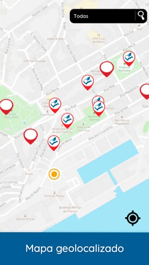 Agenda de eventos: en la que podrás que conocer qué pasa en Ferrol en cada momento con un calendario, además, podrás conocer los más cercanos sobre el mapa gracias a la geolocalización.