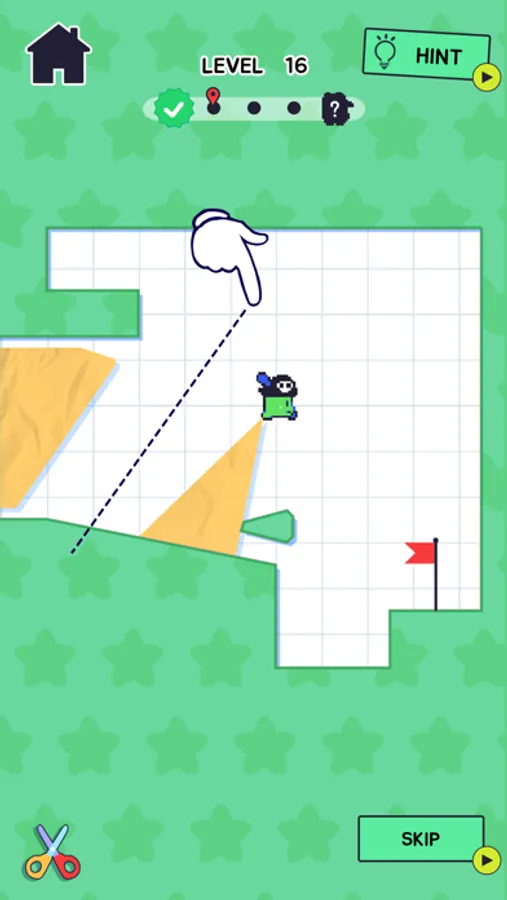Cut the paper with precision and reach the flag! It’s time to use your brain and find the best strategy to slice your way through.