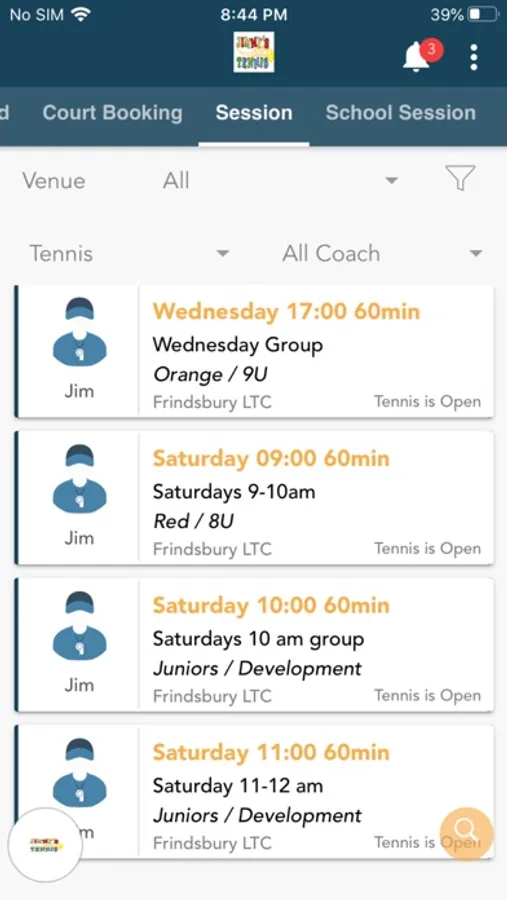 Our own branded app to facilitate booking on to our coaching programmes for 4 year olds to Adults of all levels - Schools, Club and Holiday programmes