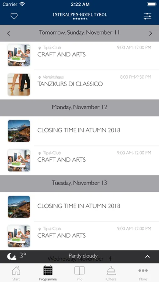 - Daily news from the Interalpen-Hotel Tyrol will keep you informed: Here you will find the current activity programme, the sauna infusion plan or the children's & youth programme.