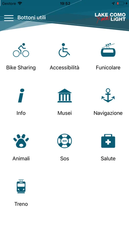 The "Lake Light" app, focused on the points of interest of the Como area and developed on the occasion of the Christmas markets 2018, is divided into 4 main branches accessible only through registration: