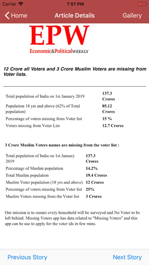 Problem : A Research conducted by RayLabs has found 15% of all Voters and 25% of Muslim Voters are not present in Voter lists. So, 12.7 Crores all Voters and 3 Crore Muslim Voters cannot vote in May 2019 Lok Sabha elections. For more details, read the article “Electoral Exclusion of Minorities is a plague to Indian Democracy” by Dr.Abu saleh Shariff and Khalid Saifullah published in "Economic and Political Weekly".