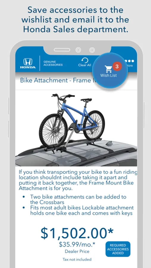 Honda purchasers can engage and share hi-res accessory images, an app chart, videos, a wish-list cart, via Wish List and Email.