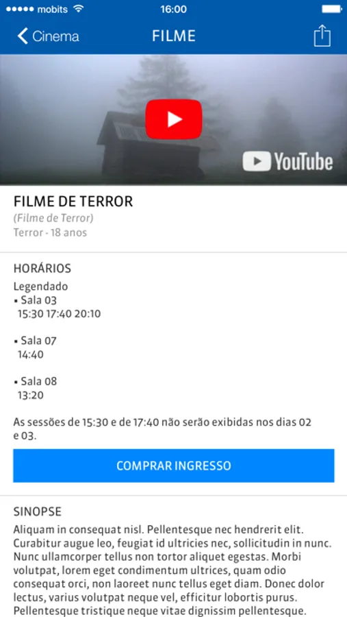 - Informações do shopping (contatos, endereço e horários de funcionamento)