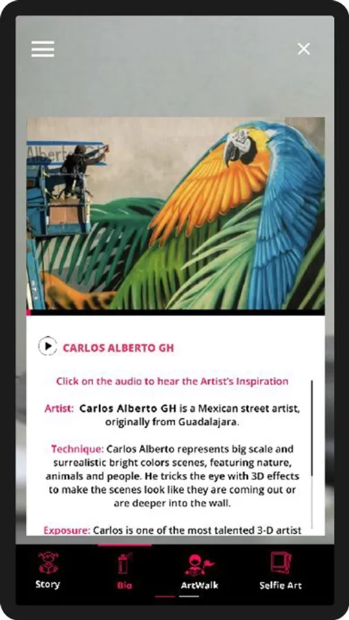 * Scan murals, pictures of murals and paintings around you to discover: the story and inspiration behind the making, the artists bios & techniques; statistics and how you can engage to make a difference.