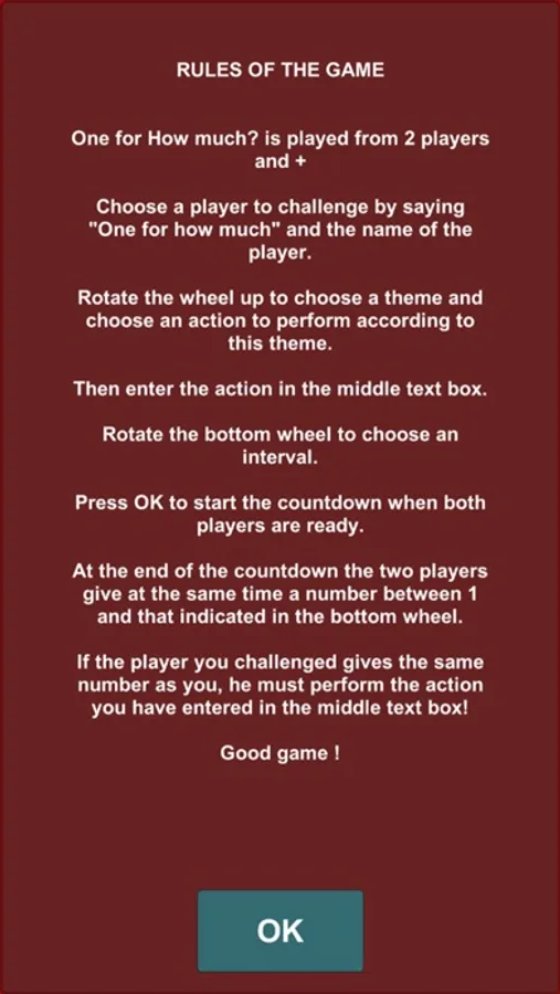 If the player you challenged gives the same number as you, he must perform the action you have entered in the middle text box!