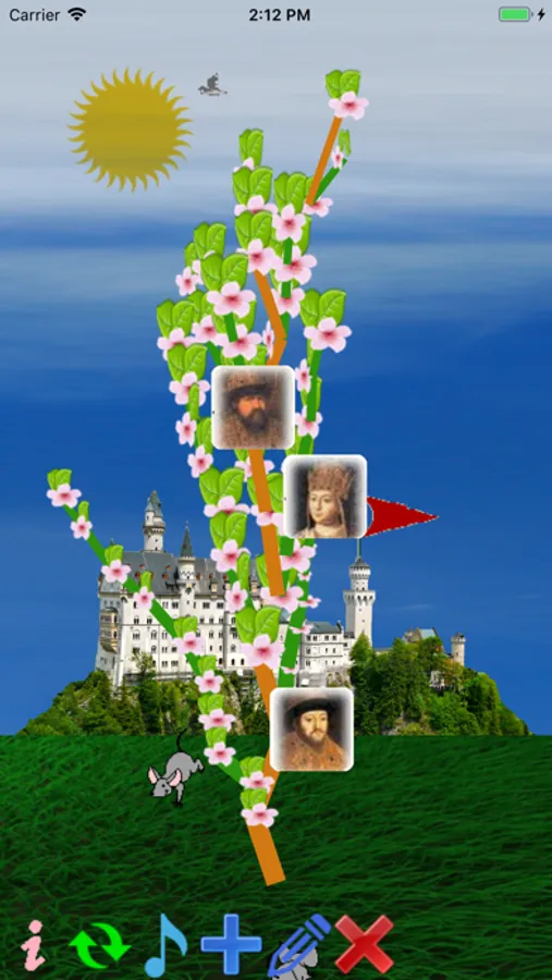 The fifth button, Edit, is used to replace a person's icon with a tree from the photo gallery on the device.