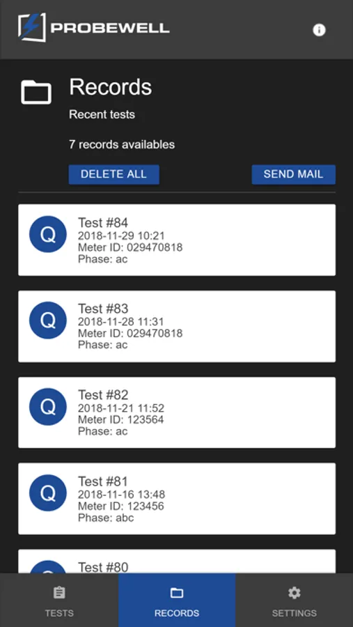 Visualize test report data directly on device. Reports can be sent via email within the app.
