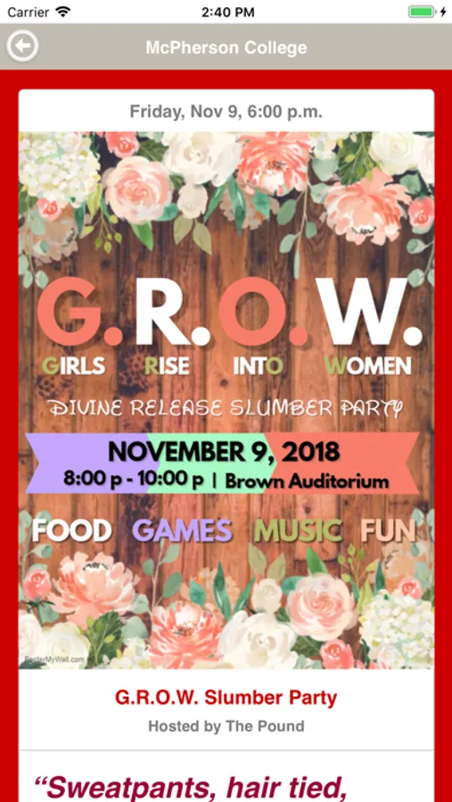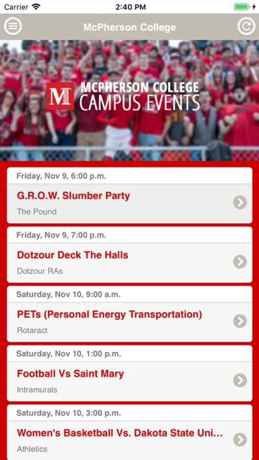 Use the McPherson College Events app to find out what events are happening and find out how you can get involved on campus!
