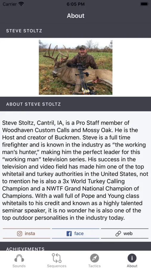 Whitetail Tech is the cutting of edge of whitetail deer calling and hunting technology. Under the guidance of the whitetail wizard himself, Steve Stoltz, you will be able to hone your whitetail hunting and, in particular, calling skills and better know how to to successfully harvest better and more whitetail deer. Whitetail Tech is loaded with videos that teach how to make the most common deer calls and rattling sequences. You can then compare how you sound to real deer audio as well as audio of Steve Stoltz calling and rattling for each of these sounds. Finally, Steve Stoltz has taken his tried and true deer hunting tips, and organized them by deer sound on the app.