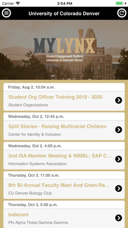 • Sort by campus organizations hosting events