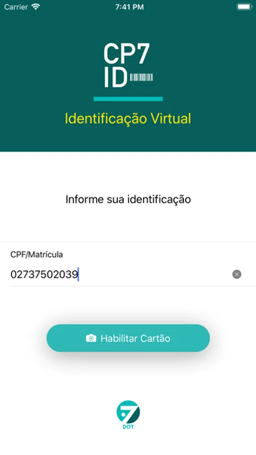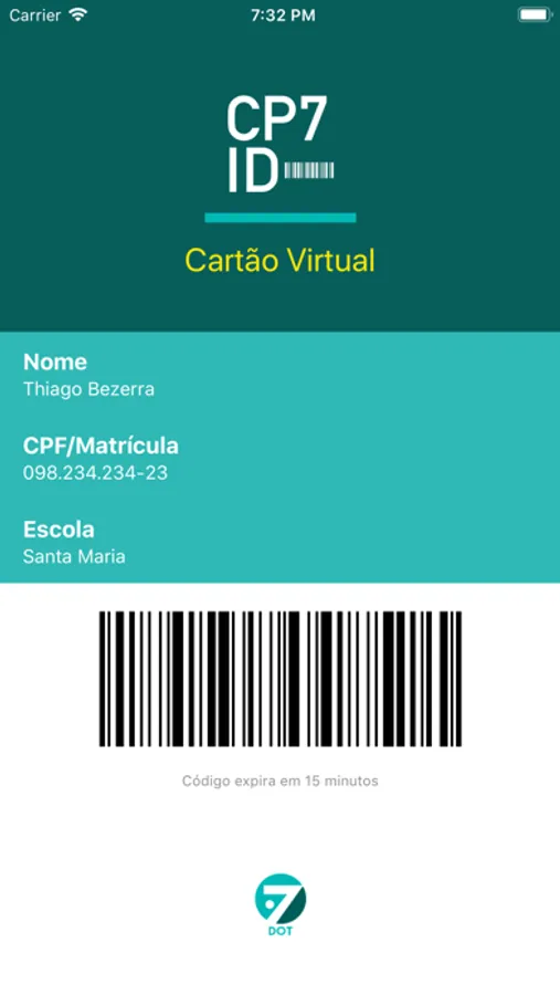 Aplicativo gerador de cartão virtual para o utilizar no controle de acesso dos clientes da Dot7 que utilizam a plataforma CP7.