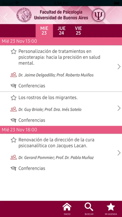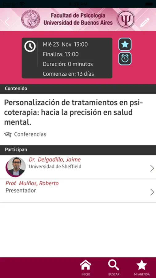 - Permite crear tu propia agenda y recordatorios de sesiones que interesen.