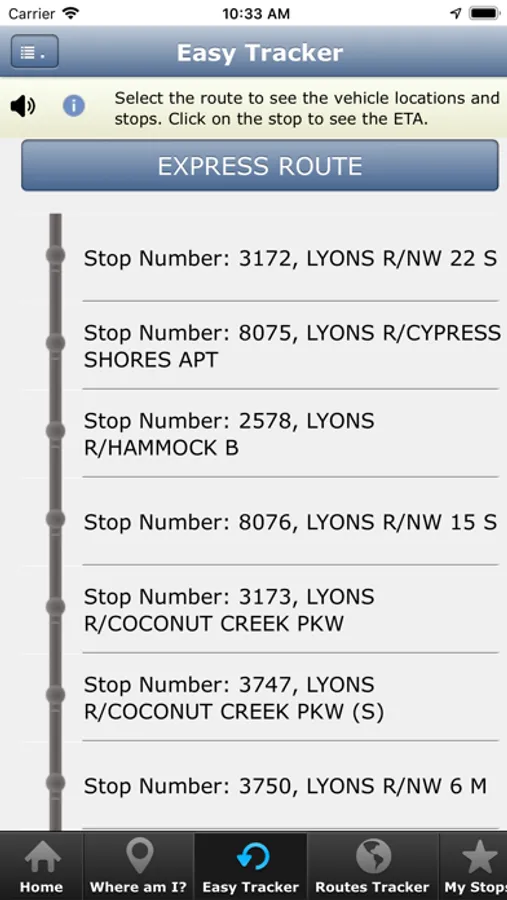 • If a Stop or Route is not near your location, the system will guide you by giving you walking directions on how to reach your nearest Stop or Route.