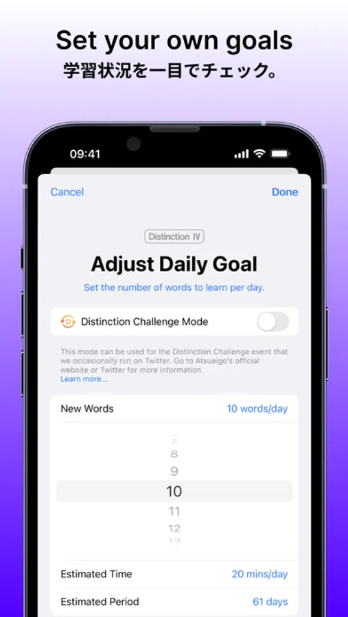・Create your own study plan based on your time availability and a daily vocabulary target.