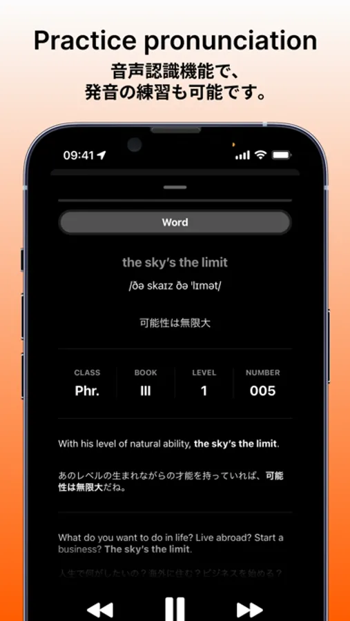 ・Practice your pronunciation with speech recognition (available only for main vocabulary, excluding Structures).