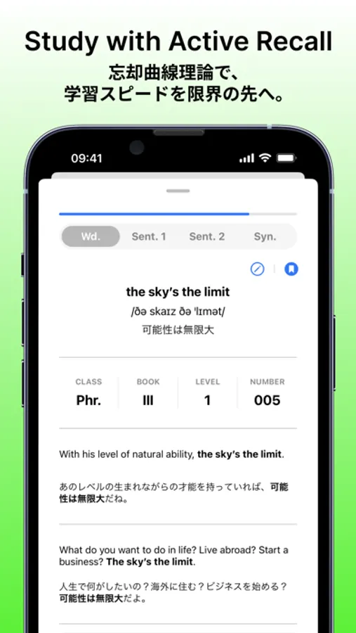 ・Achieve efficient memorization with spaced repetition based Study Mode, which reminds you of vocabulary when you’re about to forget it (Active Recall).