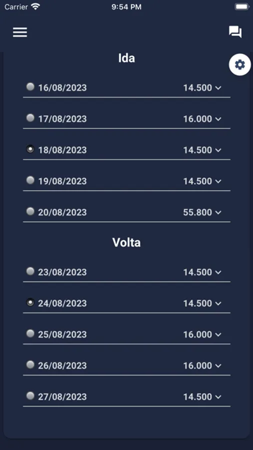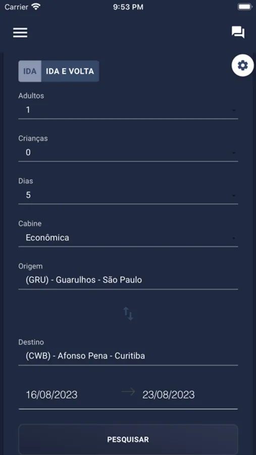 Procurar passagens entre um determinado intervalo de dias