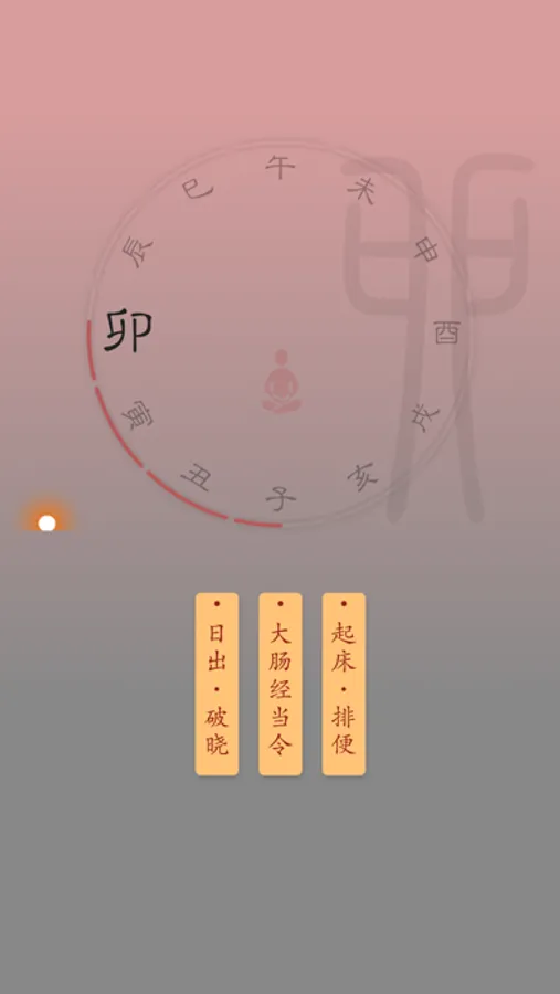 【卯时】清早5点到7点。又名日上、日生、日始、日晞、旭日、破晓等。《诗经·桧风·羔裘》:“日出有曜,羔裘如濡。”,“日出”是指太阳升出地平线之时。此时,旭日东升,光耀大地,给人以勃勃生机之感。