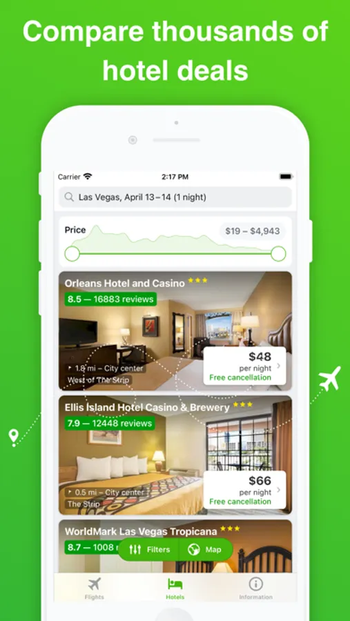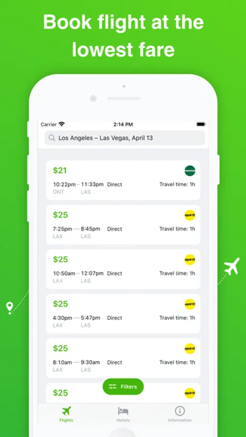 Low Fare Flights app is designed to make flight booking easy, helping you compare cheap flights with convenience. Find unbeatable deals on airline tickets from American Airlines and Allegiant Airlines. Whether you're looking for domestic flights, international flights, or last minute deals on flight tickets — it doesn't matter. Low Fare Flights app empowers you by delivering all the cheap airline tickets available, and other helpful options you need when trying to book flights with great airfare deals. Get the best air tickets price, every time.