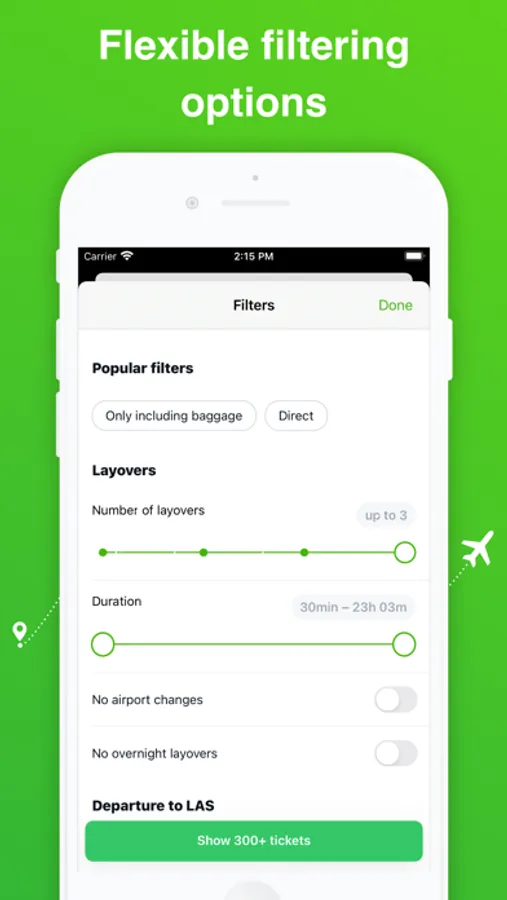 Flexible Filtering Options: Search for cheap airline tickets however you want, whenever you want. Narrow flight searches by a number of stops, total price, journey time, stopover duration, and more. Low Fare Flights app even provides recommendations for cheap flights based on your preferences! Flight tickets booking made easy.