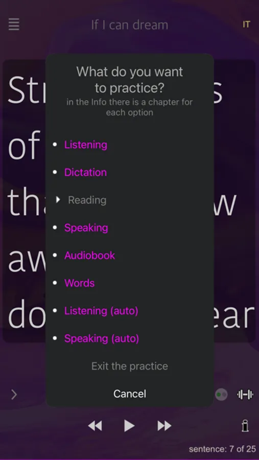 The contents can be the transcripts that many podcasts allow you to download, one or more chapters of a book that you have purchased in digital format, the lyrics of a song, an article on a topic of your interest that you find on thousands of Internet sites, a list of useful sentences or idioms or grammar constructions that you want to learn to recognize and say.