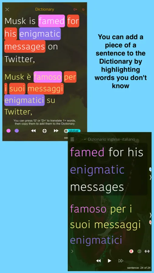 The texts thus obtained, in any language among the 33 supported by Apple devices, will automatically be broken down into sentences, becoming the basis on which to study. Thanks to Apple's 'Text to Speech' function, in practice it is as if they were also Audio files, because you can have them read by any of the voices available for the language you are studying, sentence by sentence, word by word, you will thus have the power of an Audio file, manageable with the simplicity of a text file.
