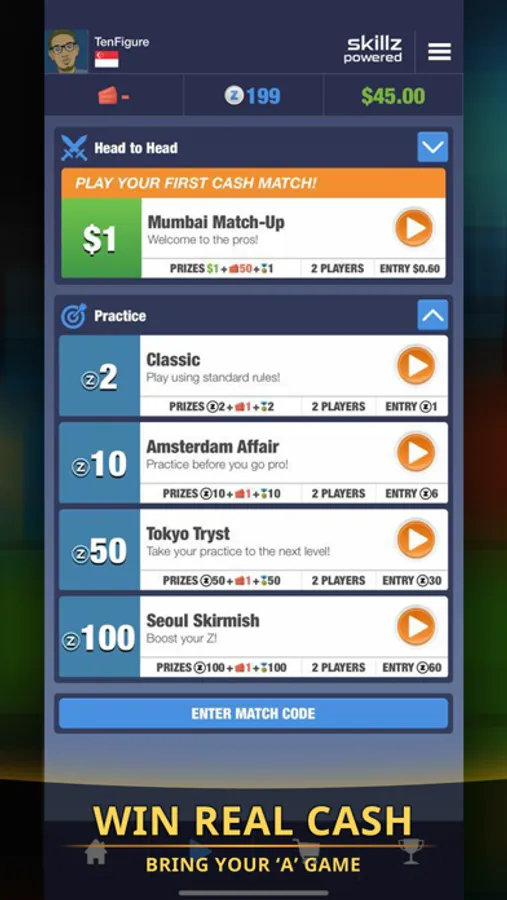Have the skills to pay the bills? Compete in tournaments and head-to-head competitions to win real cash prizes!