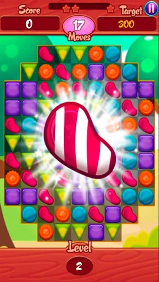 Match 3 Candies on every square to destroy all the red squares in the level. Then a magic jelly will appear. Let the jelly fall off the board to win.