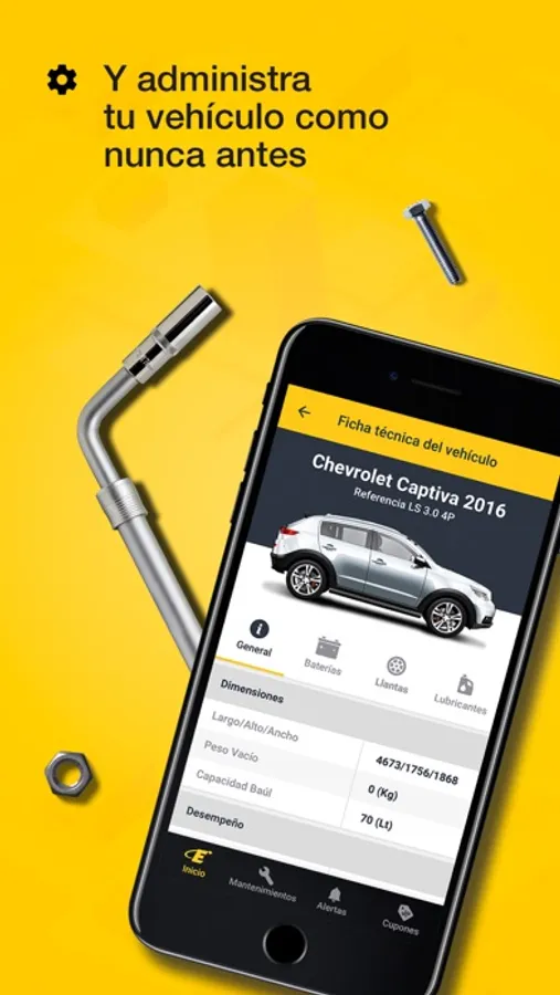 Te mostraremos una ficha técnica muy detallada de tu carro, en donde tendrás toda la información relacionada con las llantas, batería, lubricante y muchos otros detalles que te ayudarán a conocer a fondo el desempeño de tu vehículo.