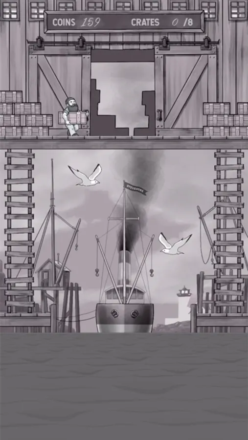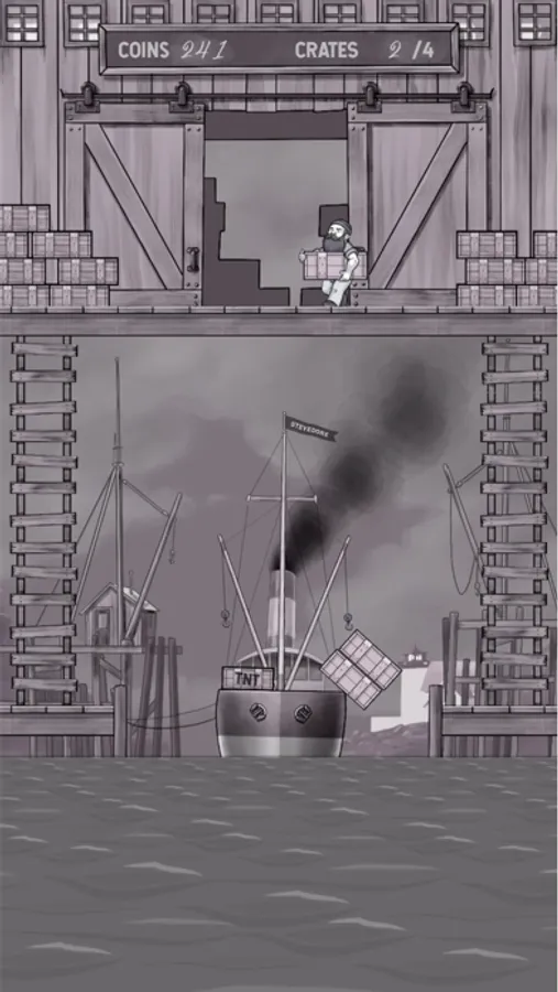 See how many crates you can load onto the cargo ship bobbing in the water below! Earn coins for every crate you load to unlock more characters. For every goal you achieve, you'll unlock another chapter. Unlock 10 chapters and you'll unlock the next challenge! Beat all the chapters for a hidden bonus round!