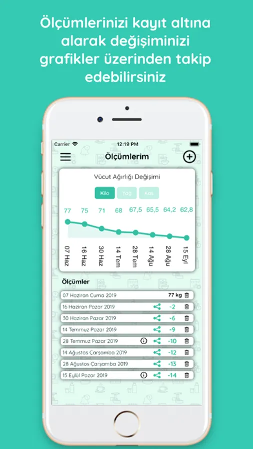 diyetyapp uygulaması ile ücretsiz olarak ölçümlerinizi kayıt altına alarak değişiminizi grafikler üzerinden takip edebilir ve güncel blog yazılarını okuyup, profesyonellerin sağlık tavsiyelerinden yararlanabilirsiniz.