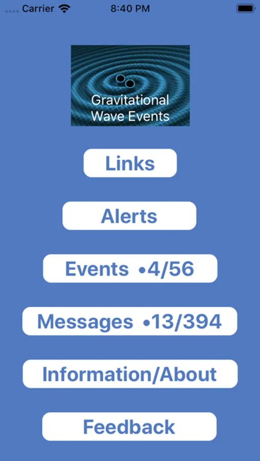 The app also has a public Message exchange bulletin board and some interesting Links. The Links provide information on Gravitational Waves and the LIGO and Virgo observatories.