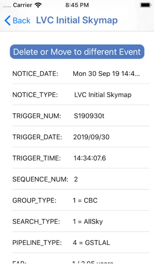 The O3 observing run ended in March 2020. O4 is expected to start in May 2023. The app will download all O4 events and counterparts as they are reported through a GCN Notice in addition to any related GCN Circulars. The app database is pre-populated with selected Notices and Circulars from all previous O1, O2 and O3 events. The app retains Notices for one Mock Event reported through GCN for testing purposes. (For information on LIGO/Virgo/KAGRA Collaboration GCN Notices see: https://gcn.gsfc.nasa.gov/lvc.html .)