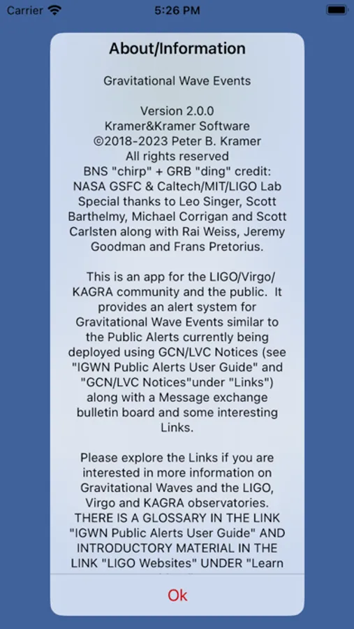 This is an app for both the LIGO/Virgo/KAGRA Community and the general public. It provides low latency alerts using the Open Public Alerts currently being deployed by the Gamma-ray Coordinates Network (GCN) through GCN/LVK Notices (https://emfollow.docs.ligo.org/userguide/). To receive alerts using the app just select the category of alerts you wish to receive - it's that simple!