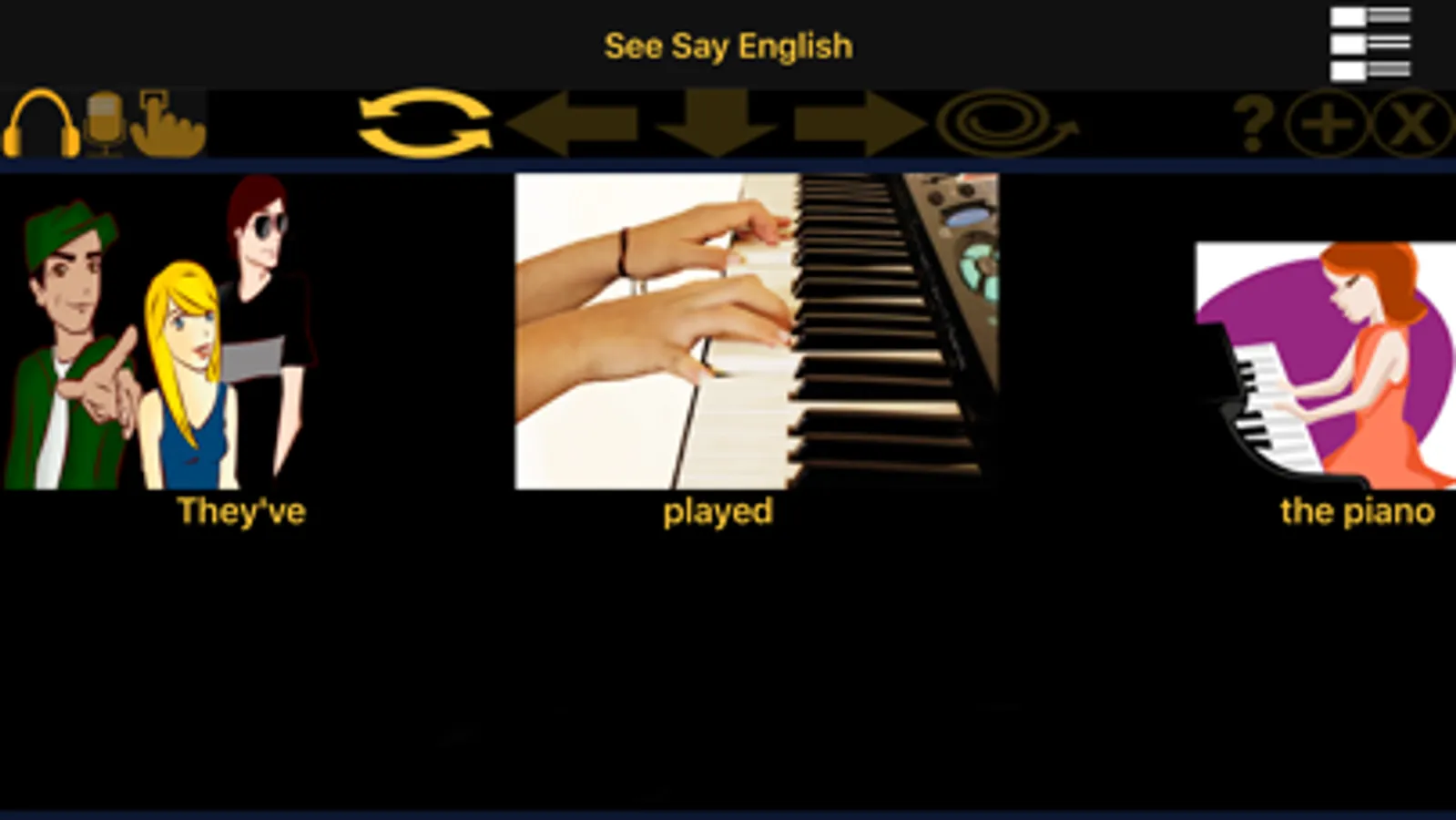 See Say English is an interactive course that teaches the basic verb structure of English through the use of pictures and symbols.