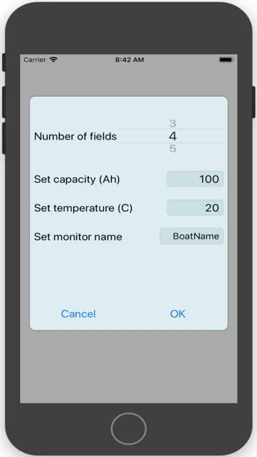 The app also allows you to set the unit's properties (capacity, operating temperature, unit name).