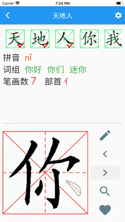 练习素材包括学生课文生字、YCT、HSK考试内容、国学经典如三字经,弟子规,唐诗宋词等,软件还可以根据部首,总笔画,拼音对汉字进行查找,特别适合学习汉字的朋友。