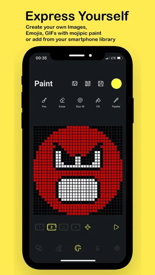 Mojipic Paint has a wonderful feature that enables drawing in real time. Everything you draw immediately appears on your Mojipic's screen. Try it out and you’ll never be able to go back to regular drawing.