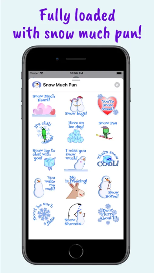 The Snow Much Pun sticker collection is loaded with snow much punny fun and snowflakey goodness! These stickers are sure to bring a lot of snow flurry to your iMessage conversations!