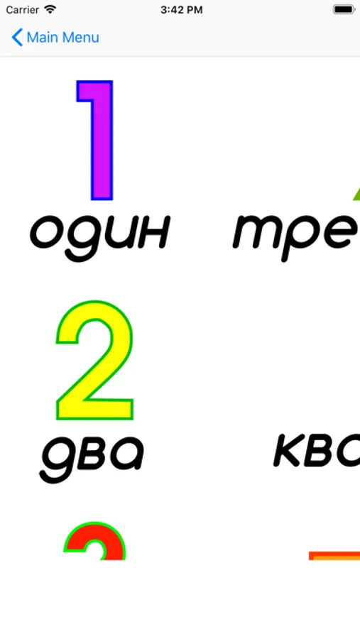 This app offers you the opportunity to learn numbers, shapes and colors in Russian.