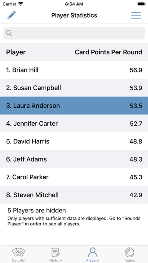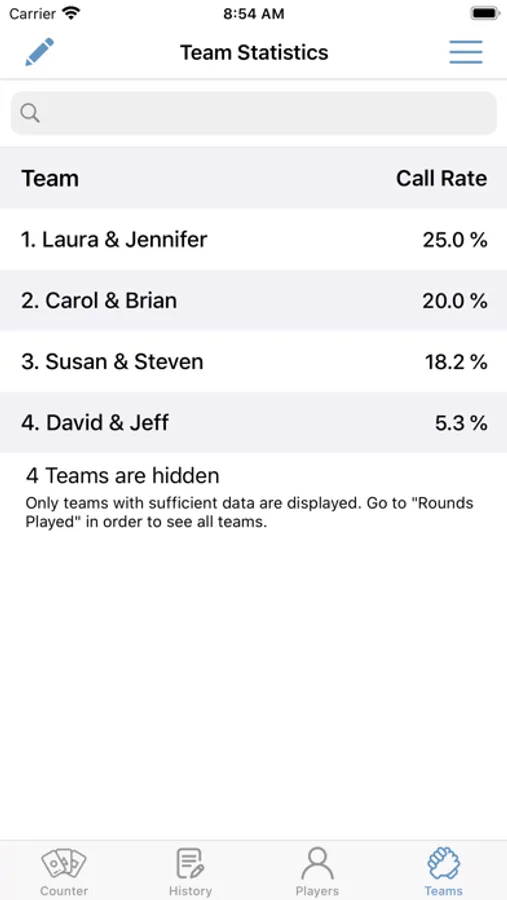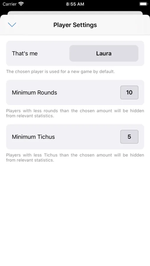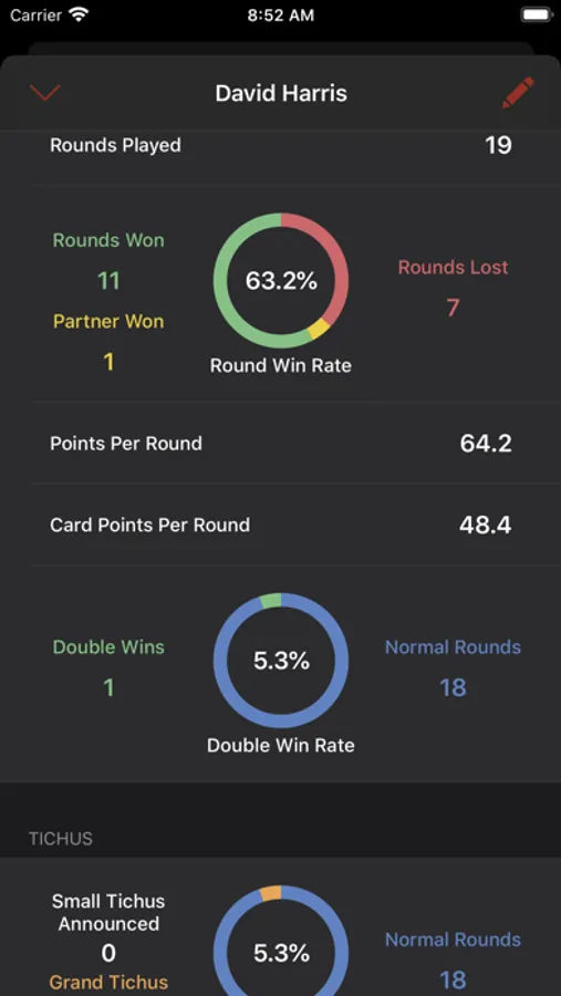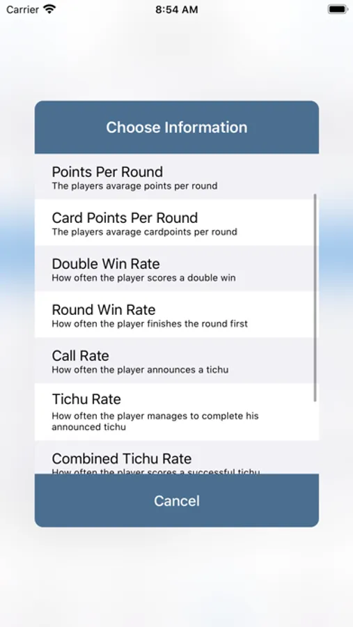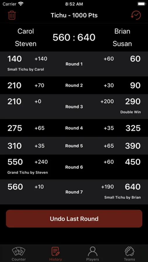 Tichu Counter keeps track of the score and the histories of all your Tichu games. Additionally it creates individual player and team statistics in order to help you to improve your gameplay.