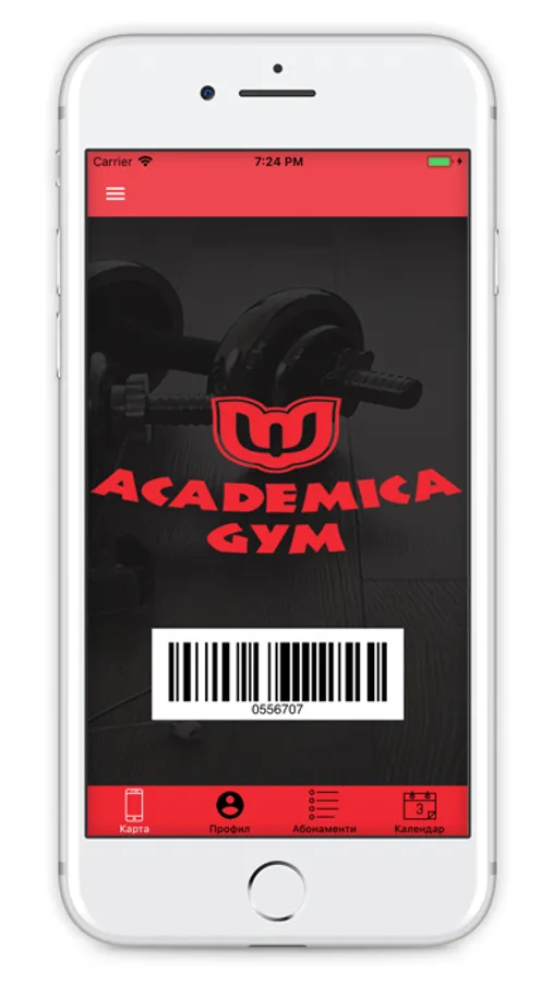 Users can book events through the calendar, track their subscriptions and visits. The app can be used instead of the gym membership card because the customer barcode is displayed on the main page.