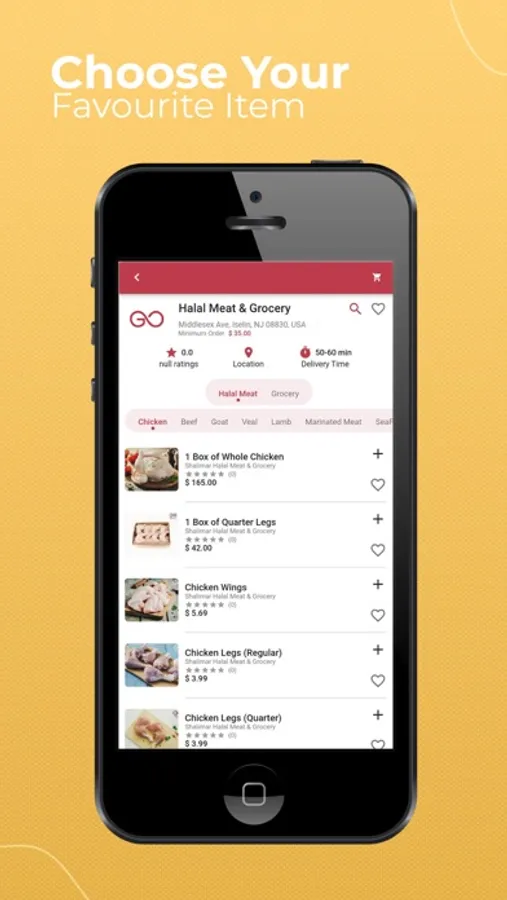 Food can be searched for in nearby stores by Meat, Grocery, Restaurant, Frozen Foods, and even spices. To place an order, select from the variety of options offered at each store or restaurant for food delivery