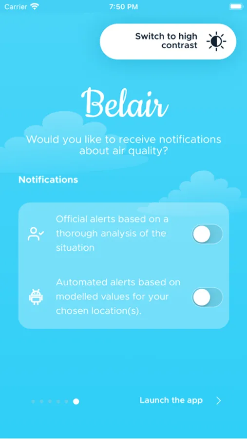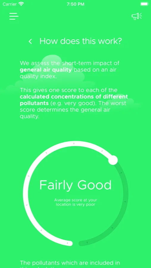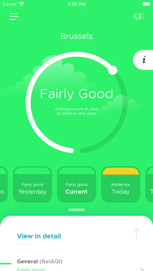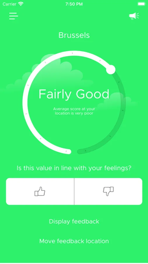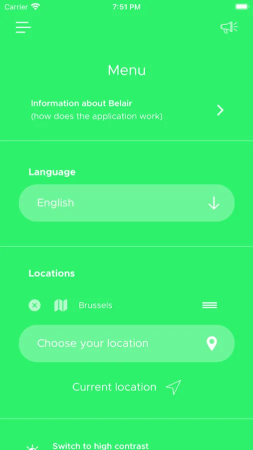 The BelAIR app gives a score, ranging from "very good" to "horrible", of the current air quality everywhere in Belgium. The app also makes a forecast of the air quality for the next few days and gives an idea of the long-term evolution of air quality.