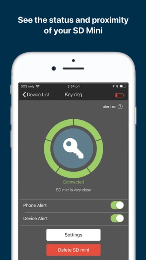 SD Mini can attach to anything you can't afford to lose. The app alerts you if you’ve left your item behind, showing its last location location on a map, or you can trigger a sound alert to your SD Mini, guiding you to the location of your lost item.