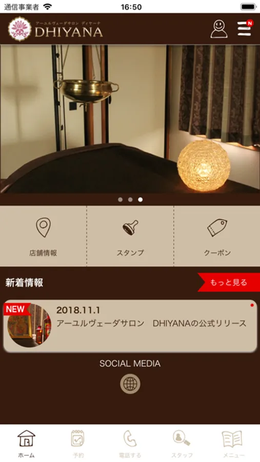 アプリを通して「アーユルヴェーダサロン DHIYANA」の新着情報やお得な情報をリアル
