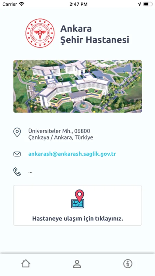 T.C. Sağlık Bakanlığı Ankara Şehir Hastanesi mobil uygulaması, Apple telefon ve tabletleriniz için özel tasarlanmıştır. Hastane içinde gitmeniz gereken yere, kimseye sorma ihtiyacı duymadan ulaşabilmenizi sağlamak için hastane içinde adım adım görsel yönlendirme sunar, engelli rotası ile sadece asansör kullanarak istediğiniz yere varabilirsiniz. Ankara Şehir Hastanesi Mobil Uygulaması, hastaneye gelmek için bulunduğunuz yerden hastaneye rota bilgisi gösterir ve hastaneye en kısa yoldan ulaşmanızı sağlar, hastaneye yaklaştığınızı veya vardığınızı anlar ve randevunuza kabul almanızı sağlar, hastane içerisinde sizi yönlendirir ve tedavi sonrası en yakın eczaneleri bulur ve sizin için listeler.