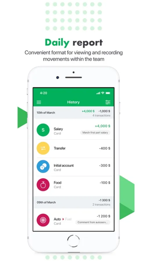 This money app has been specifically thought out to be a great help for those who have to keep more than one budget. You can set up a few teams: first for keeping your home budget, second for sharing and tracking finances among friends, etc. Each database works separately, therefore it will be up to you to decide which information will be shown to whom.